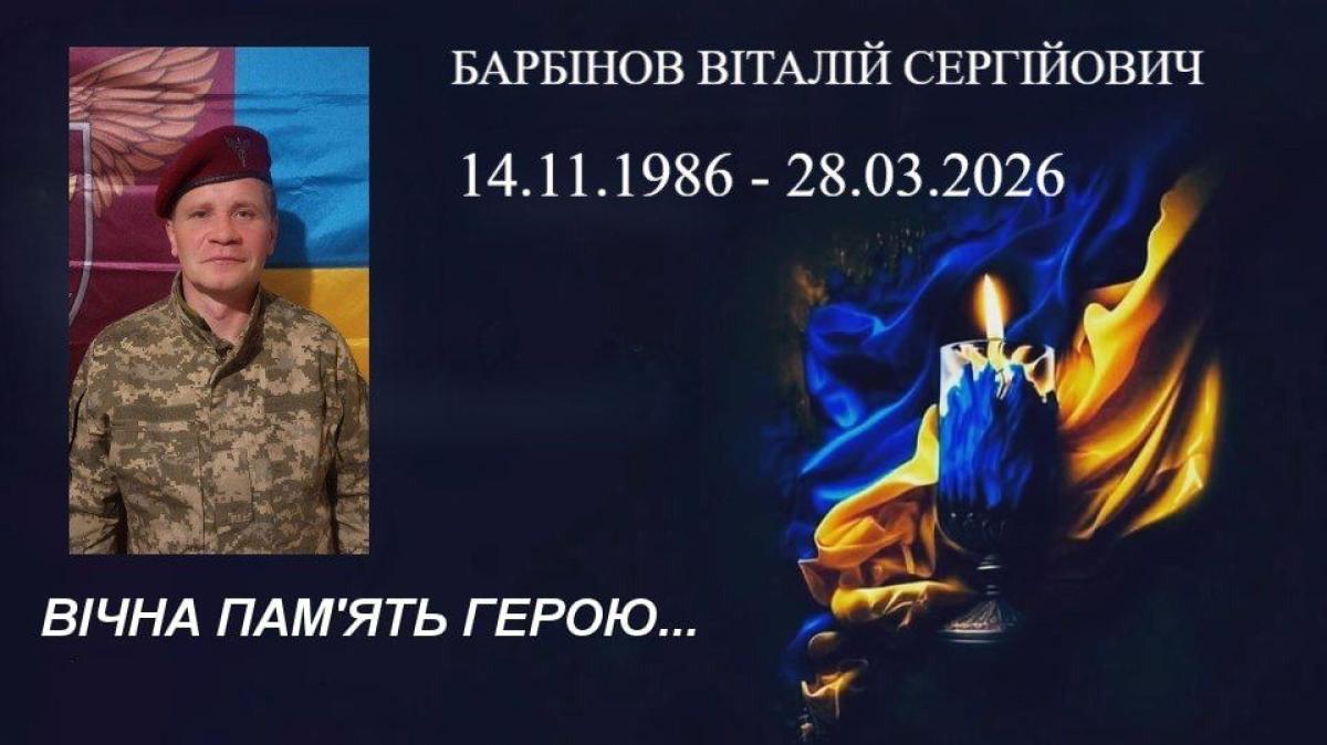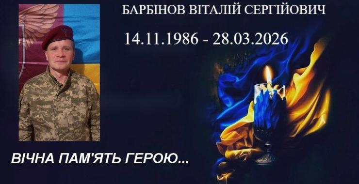 Він служив з початку 2026 року в аеромобільній роті 95-ї окремої десантно-штурмової Поліської бригади. Віталій Барбінов загинув від удару FPV-дрону противника поблизу села Вербове Синельниківського району Дніпропетровської області.