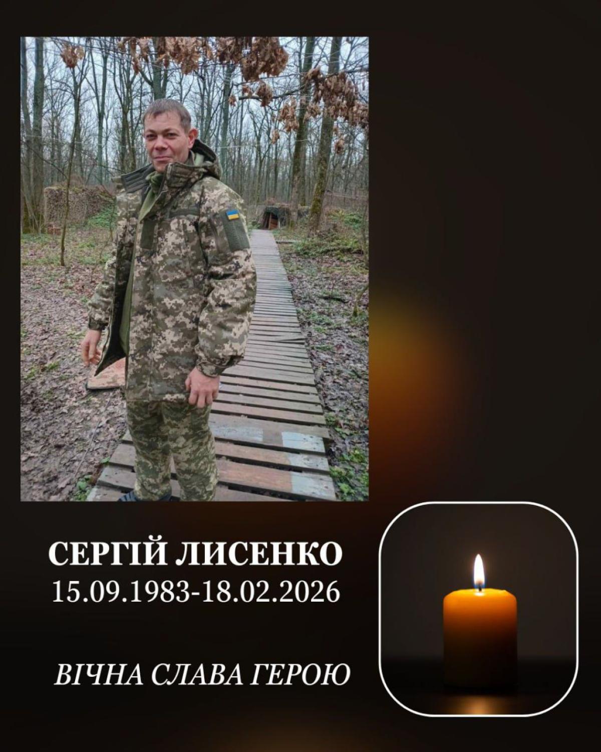 Солдат Лисенко загинув 18 лютого 2026 року поблизу села Вербове Синельниківського району Дніпропетровської області. Він служив навідником у штурмовому взводі 92-ї окремої штурмової бригади імені кошового отамана Івана Сірка.