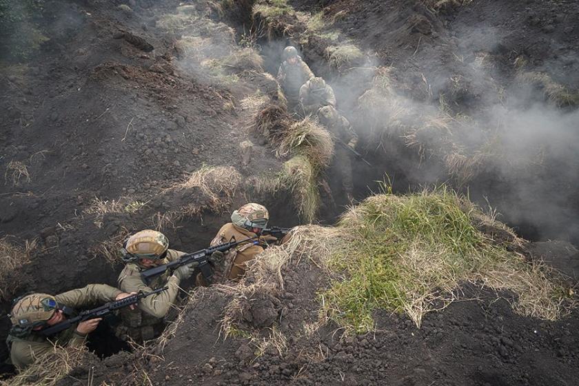 "Відпрацьовуємо під'їзд БТРом до окопів та знищення ворога безпосередньо в самих окопах двома групами з застосуванням гранат, стрілкової зброї, димів та БТРу", — розповів командир взводу бригади "Спартан" з позивним Границя.