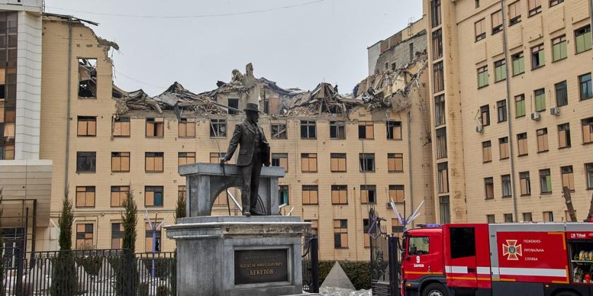 Російська ракета влучила у центральний корпус Харківського національного університету міського господарства імені О.М. Бекетова.
