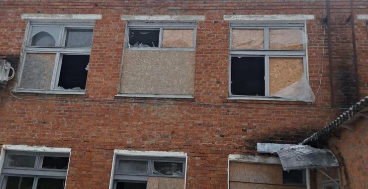 У будівлі вибиті вікна, пошкоджений фасад.