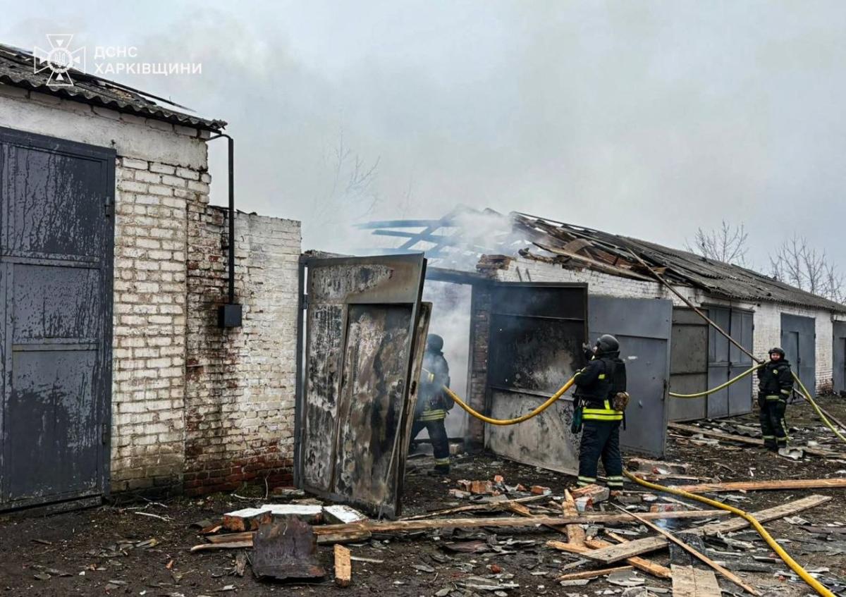 "Внаслідок влучання БпЛА сталися руйнування та загоряння двох гаражних боксів на території медичної установи. Площа пожежі склала 100 кв. м. Також пошкоджено лінію електропередач", розповіли у ДСНС Харківщини. Минулося без жертв і постраждалих.