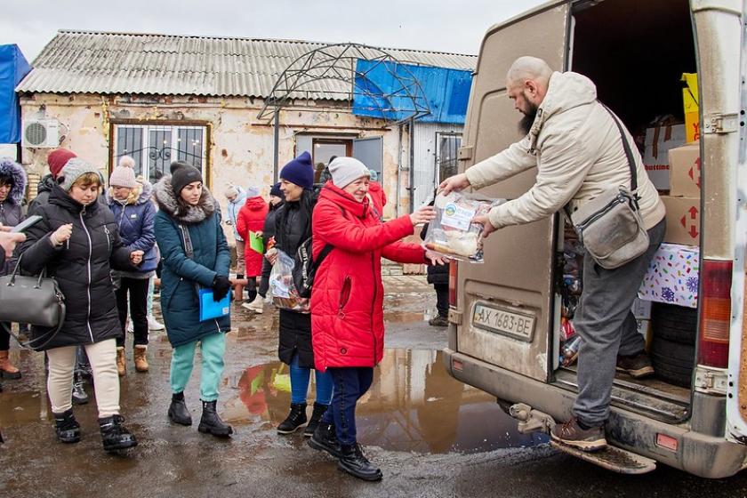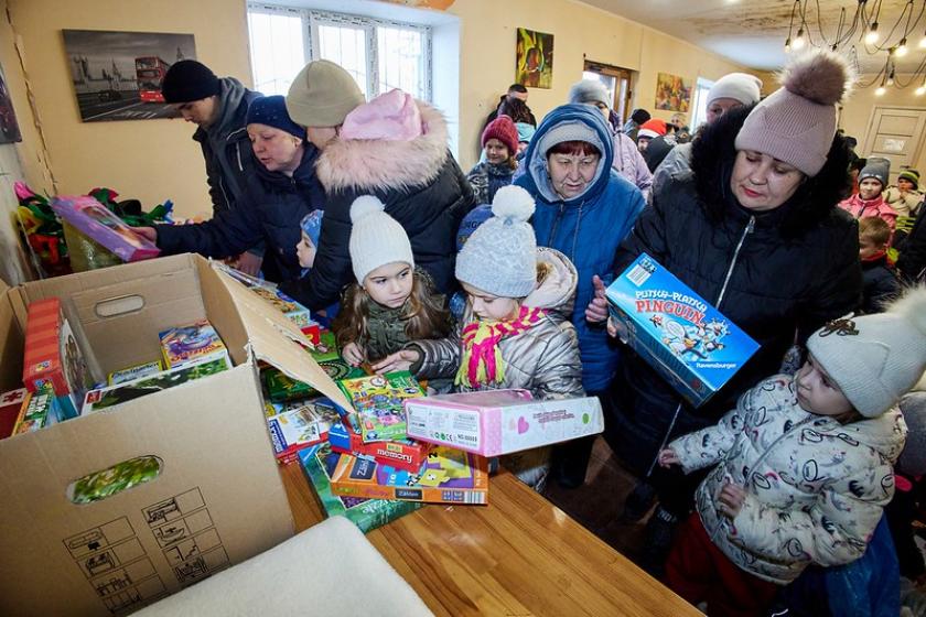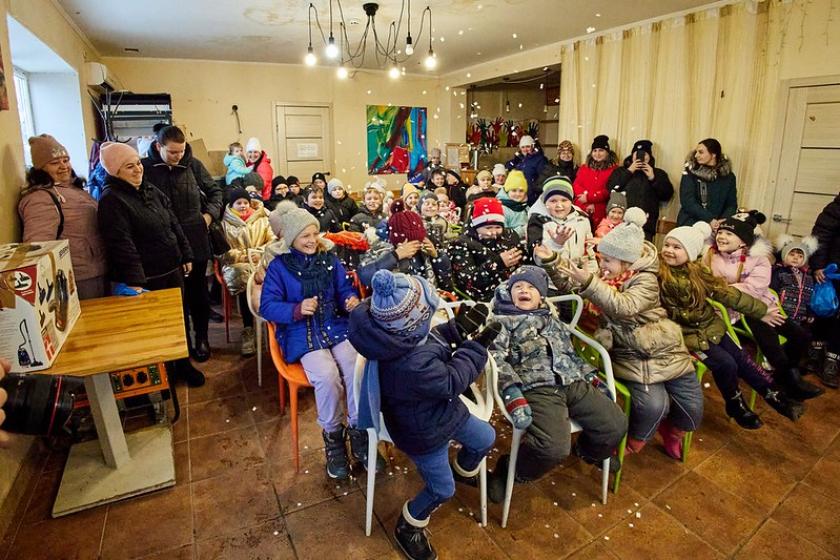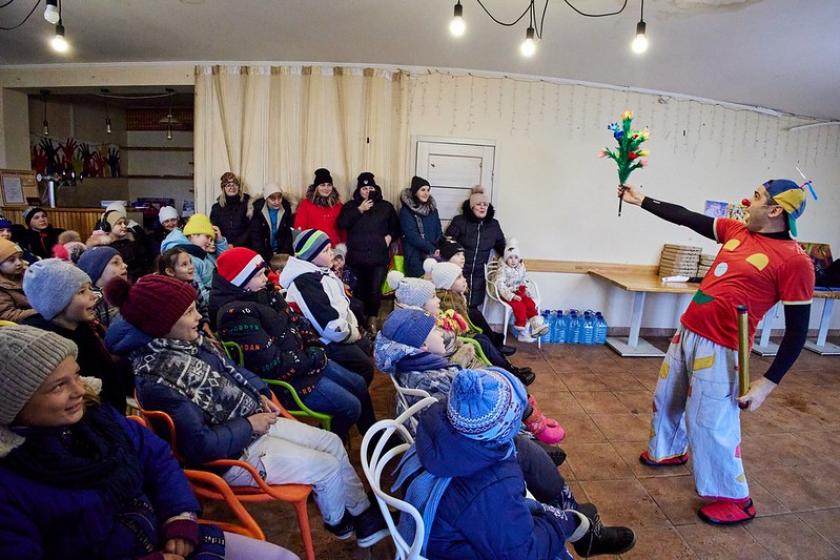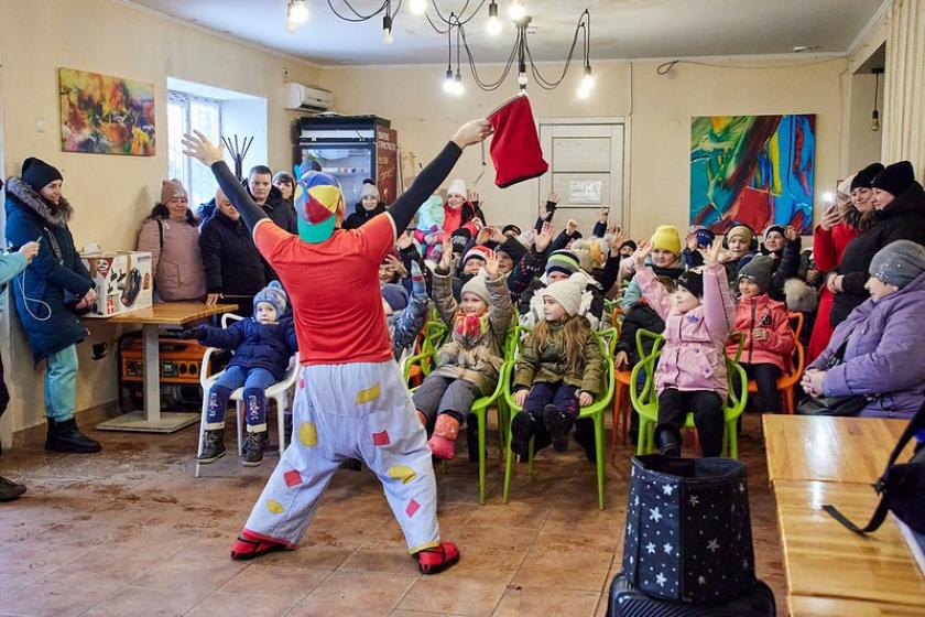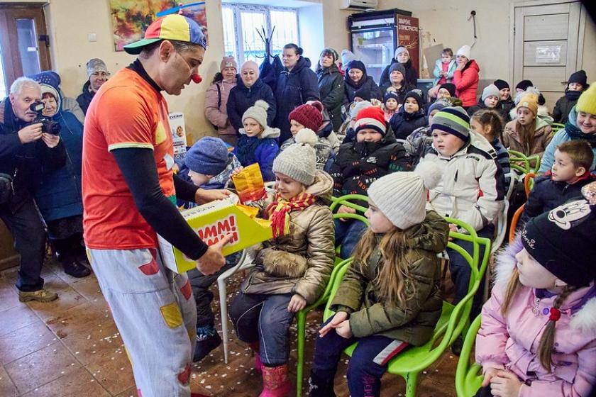 Поки діти дивилися італійське шоу, їхні батьки отримували гуманітарну допомогу від "Волонтерського єднання "Доброчинець".