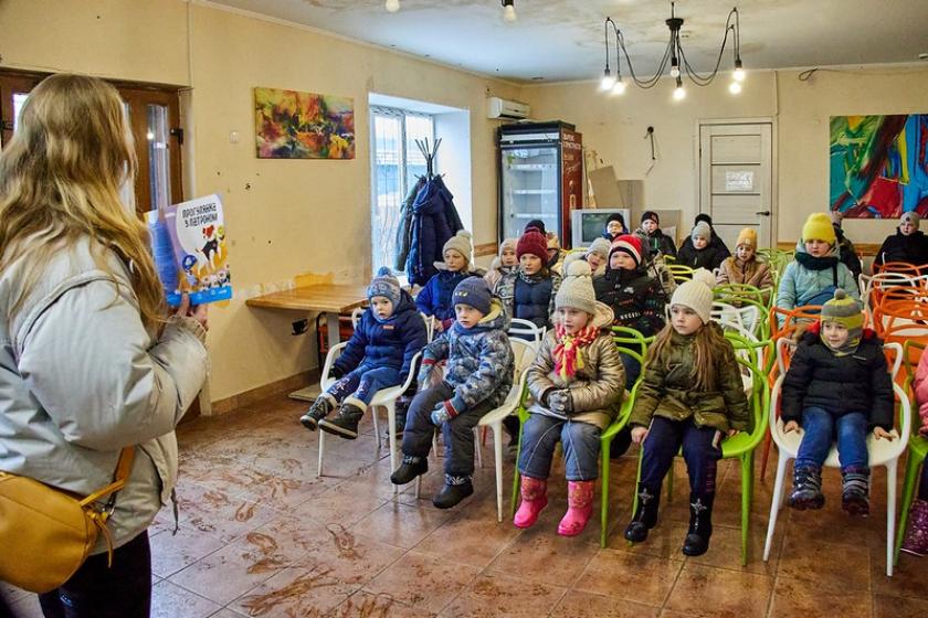 Після завершення розважальної програми Пімпа разом із волонтерами роздав дітям подарунки — книжки та іграшки.