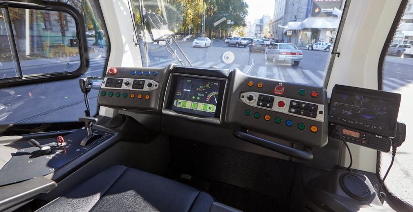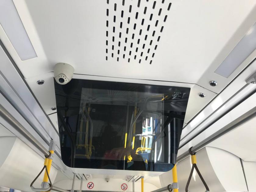 У трамваї є розетки, камери відеоспостереження та екрани.