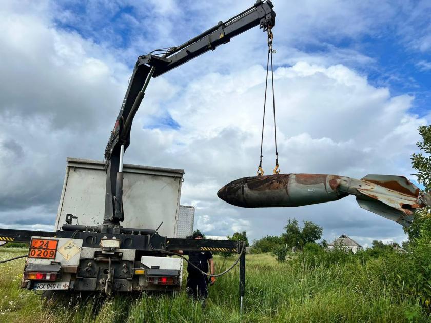 "Протягом дня на території приватного житлового сектору, місцевих підприємств та на відкритій території даного населеного пункту піротехніками було вилучено авіабомбу ФАБ-500, а також 7 шрапнельних, коригованих та осколково-фугасних артилерійських снарядів калібрів 152 мм", — розповіли у Головному управлінні ДСНС у Харківській області.