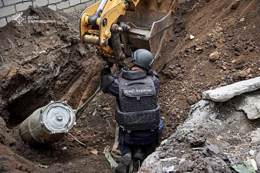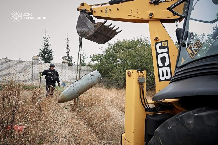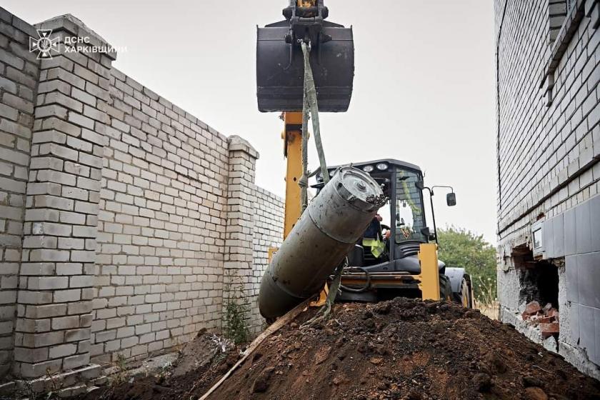 "Вчора піротехніки ДСНС прибули на місце і вилучили нерозірвану бомбу. Це була надзвичайно складна та небезпечна операція, враховуючи велику вибухову потужність та вагу КАБ-500, підступність ворога, який може встановлювати на такі боєприпаси додаткові підривники, та глибину входження бомби в землю. Будь-яка помилка в роботі саперів могла мати катастрофічні наслідки. Проте все було зроблено чітко і грамотно, тож КАБ вирушила у свою останню путь на підривний майданчик для знешкодження. Більше вона не причинить нікому горя та страждань", — розповіли у Головному управлінні ДСНС Харківщини.