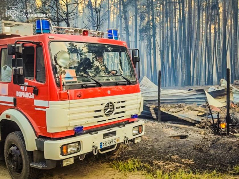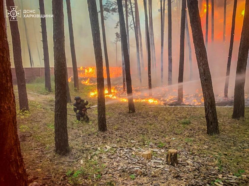 Після російського удару на Харківщині сталася масштабна пожежа у лісі, горіла база відпочинку