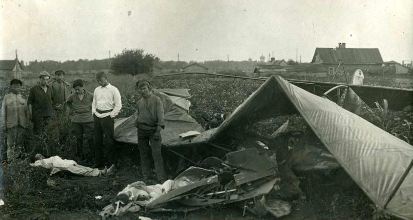 Одним із військових спостерігачів у 7-му авіазагоні був Феодосій Юхимович Гарячий, який залишив багатий архів фотографій про більшість подій, пов'язаних із життям військових льотчиків, зокрема й трагічних. Одна з них сталася під Харковом. Під час перших польотів над містом при заході на посадку 7 липня 1921 року в районі колишнього цегельного заводу Василя Досекіна зазнав аварії літак "Сопвіч". Загинули військовий льотчик та командир загону Решетов і військовий спостерігач Савицький.