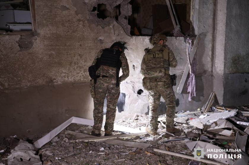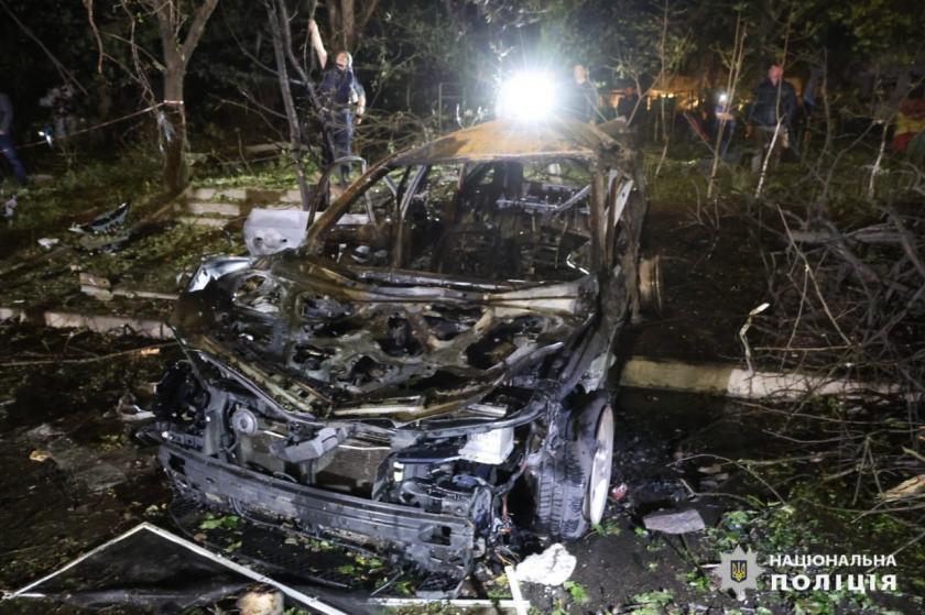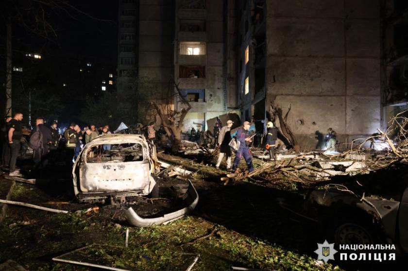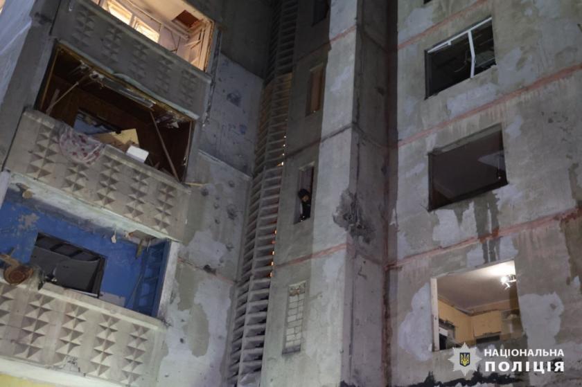 У будинку пошкоджені фасад та вікна. Зайнялися автівки перед будинком — чотири цивільні транспортні засоби згоріли повністю, пошкоджені — 21.