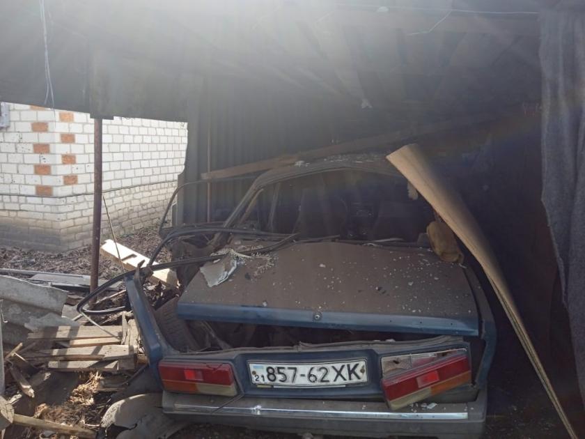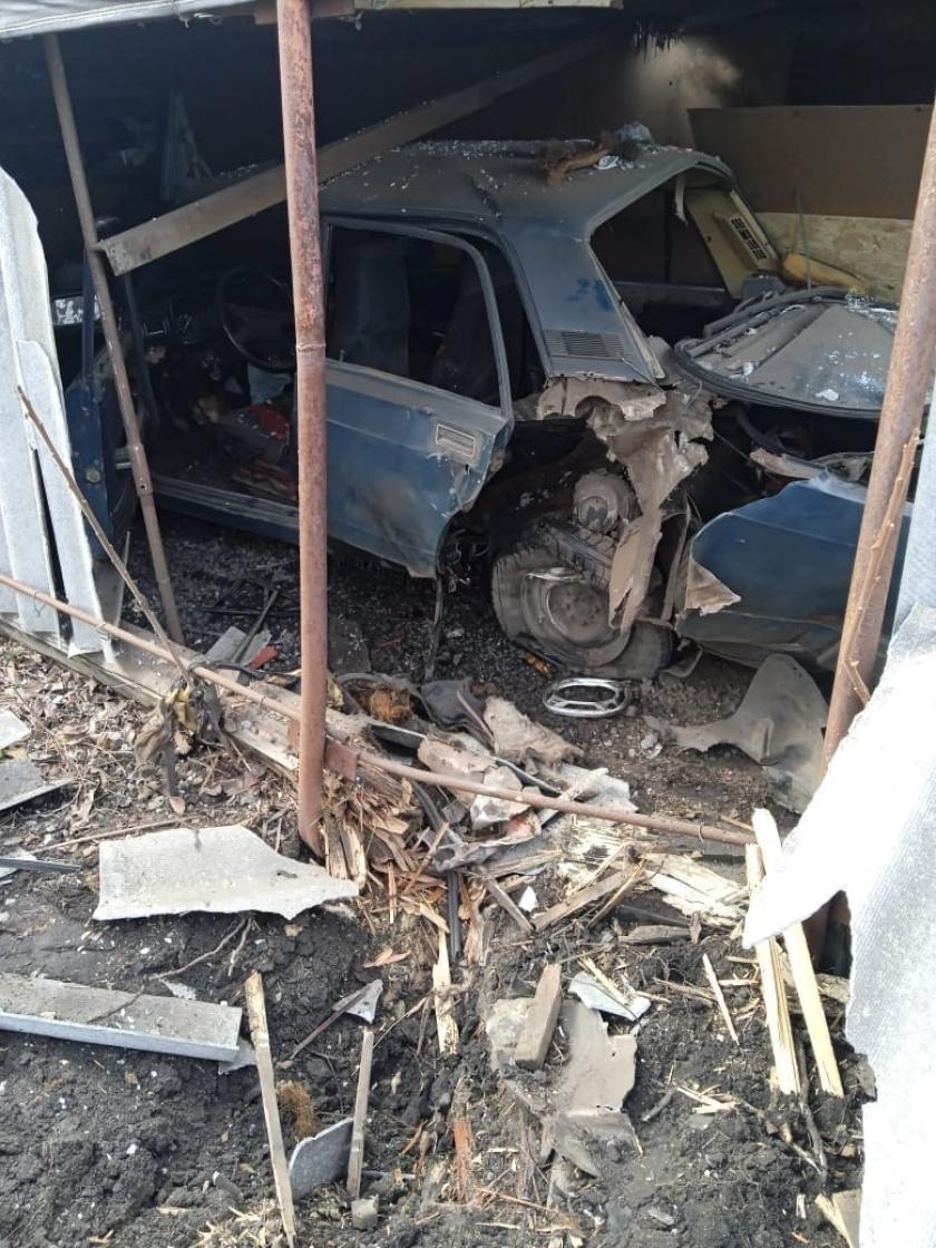 Унаслідок обстрілу знищений гараж та автівка, там було пряме влучання снаряда. Крім того, пошкоджені два будинки та енергомережі.