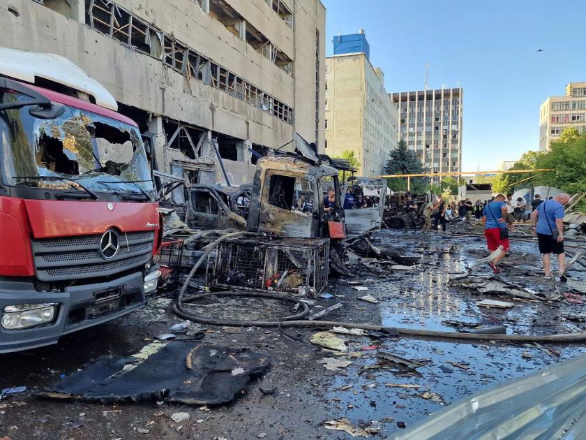 "Знищено більше 10 автівок, які знаходились під загрузкою біля терміналу "Нової пошти". Це виключно цивільний об’єкт, якій обслуговує мирних мешканців і жодного відношення до військових не має", розповів начальник ГУНП в Харківській області Володимир Тимошко.