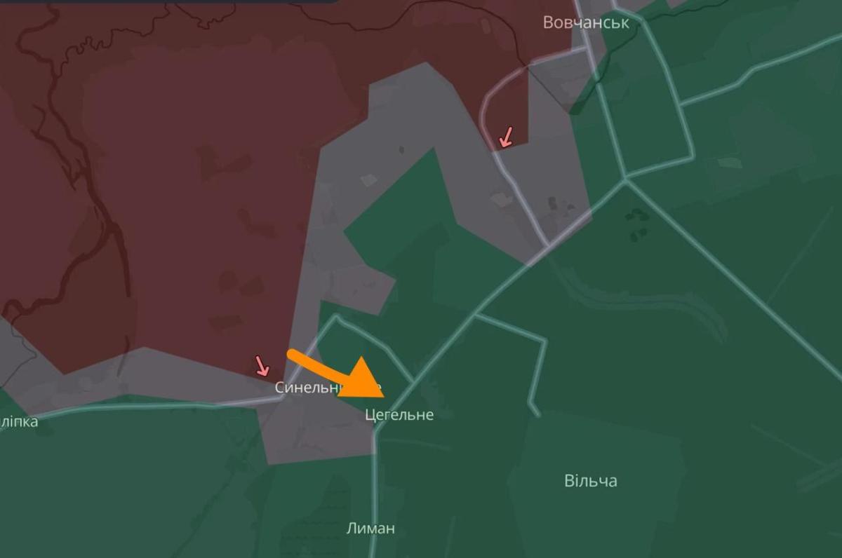Судячи з карти, російська армія просунулась у південній частині Вовчанська та на східному фланзі, що фактично відкрило їй шлях до траси на Харків. Ворог захопив село Синельникове, підійшов до Цегельного та Лиману, що розташовані на трасі (відстань до Харкова становить 75 кілометрів).