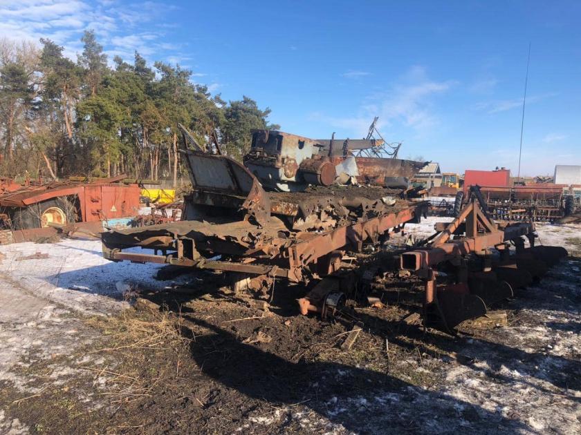 "Це фрагмент підривача до артснаряда, написи — корейською мовою. Вибухотехніки продовжують вивчати його. Під час обстрілу снаряди, попередньо, калібру 122 мм поцілили поблизу складів — побило будівлі та сільгосптехніку. Це — черговий цивільний об'єкт, жодного військового там не було", — розповів Болвінов.