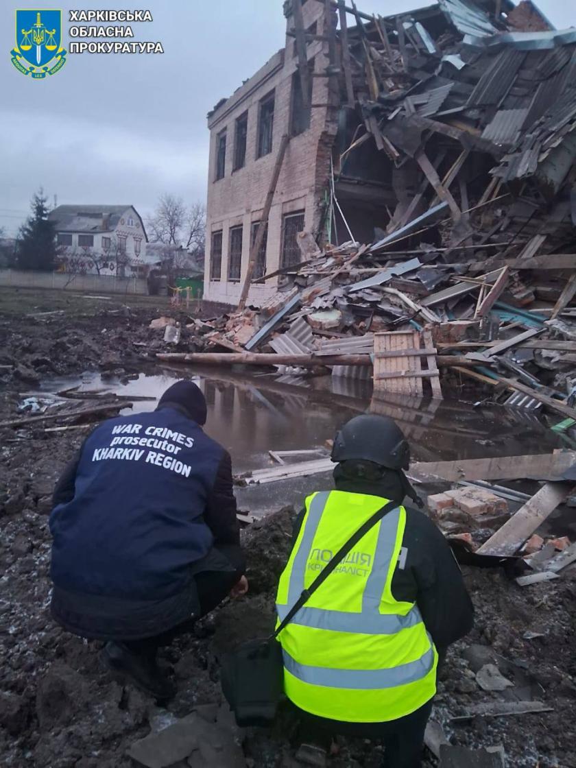За інформацією Харківської обласної прокуратури, школа зруйнована частково. Також пошкоджений корпус дитсадка. На місці обстрілу знайшли уламки ракети С-300. Слідчі відкрили кримінальне провадження за ч. 1 ст. 438 (порушення законів і звичаїв війни) Кримінального кодексу України.