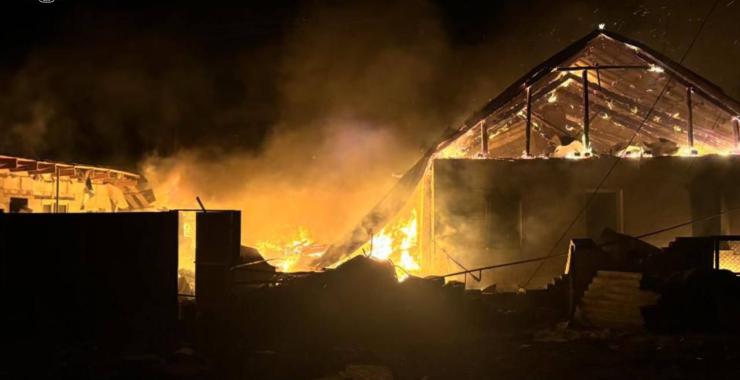 Близько 23:00 безпілотники ударили по селу Мартове. За даними прокуратури, ворог бив "Геранями-2", постраждали двоє людей.