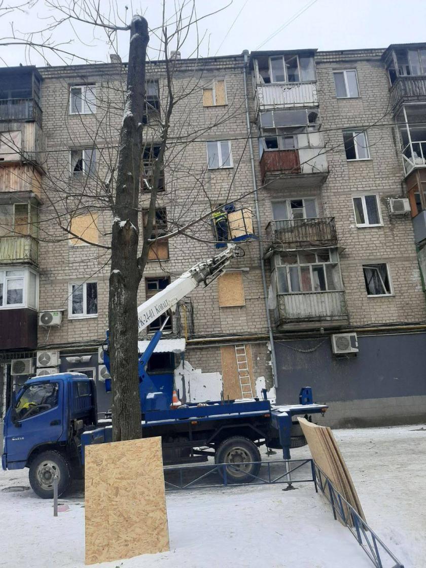 "У 38-ми будинках відключене опалення, у 27-ми — світло, у 16-ти — газопостачання. Комунальники продовжують обстежувати будівлі на наявність пошкоджень. Роботи з усунення наслідків ракетних ударів тривають", — розповіли у міськраді.