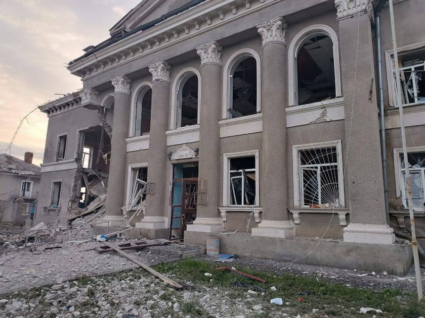 "Внаслідок обстрілу частково зруйновано колишню будівлю Золочівської адміністрації та 10 будинків, з них два житлових багатоквартирних, а також будівлю банківської установи", — розповів Синєгубов.