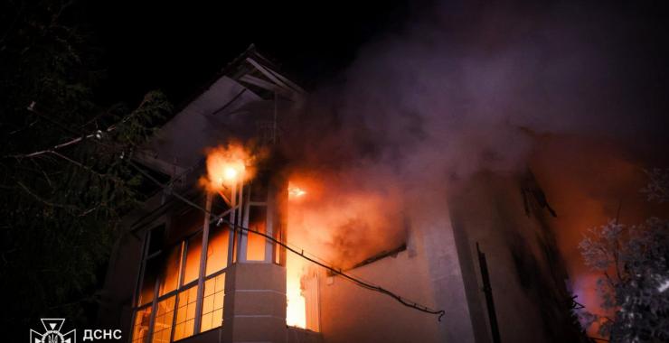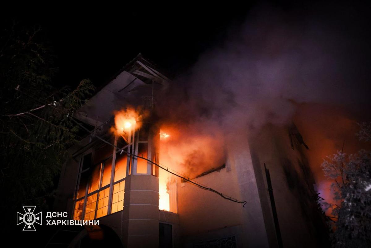 "Уночі ворожий ударний безпілотник атакував житловий сектор у Холодногірському районі. В результаті обстрілу сталися руйнації та пожежа. Горіли житловий будинок та дах альтанки на загальній площі 150 м кв. Загинула жінка, ще 3 людей постраждали", розповіли в ДСНС Харківщини.