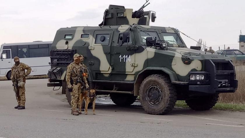 На деяких ділянках дороги в Харківській області розставили знаки "Стоп контроль". Учасники антитерористичних навчань зупиняють транспорт, оглядають його і перевіряють у водіїв документи, випробовують безпілотні літальні апарати. На дорогах можна зустріти військову техніку і службових псів.
