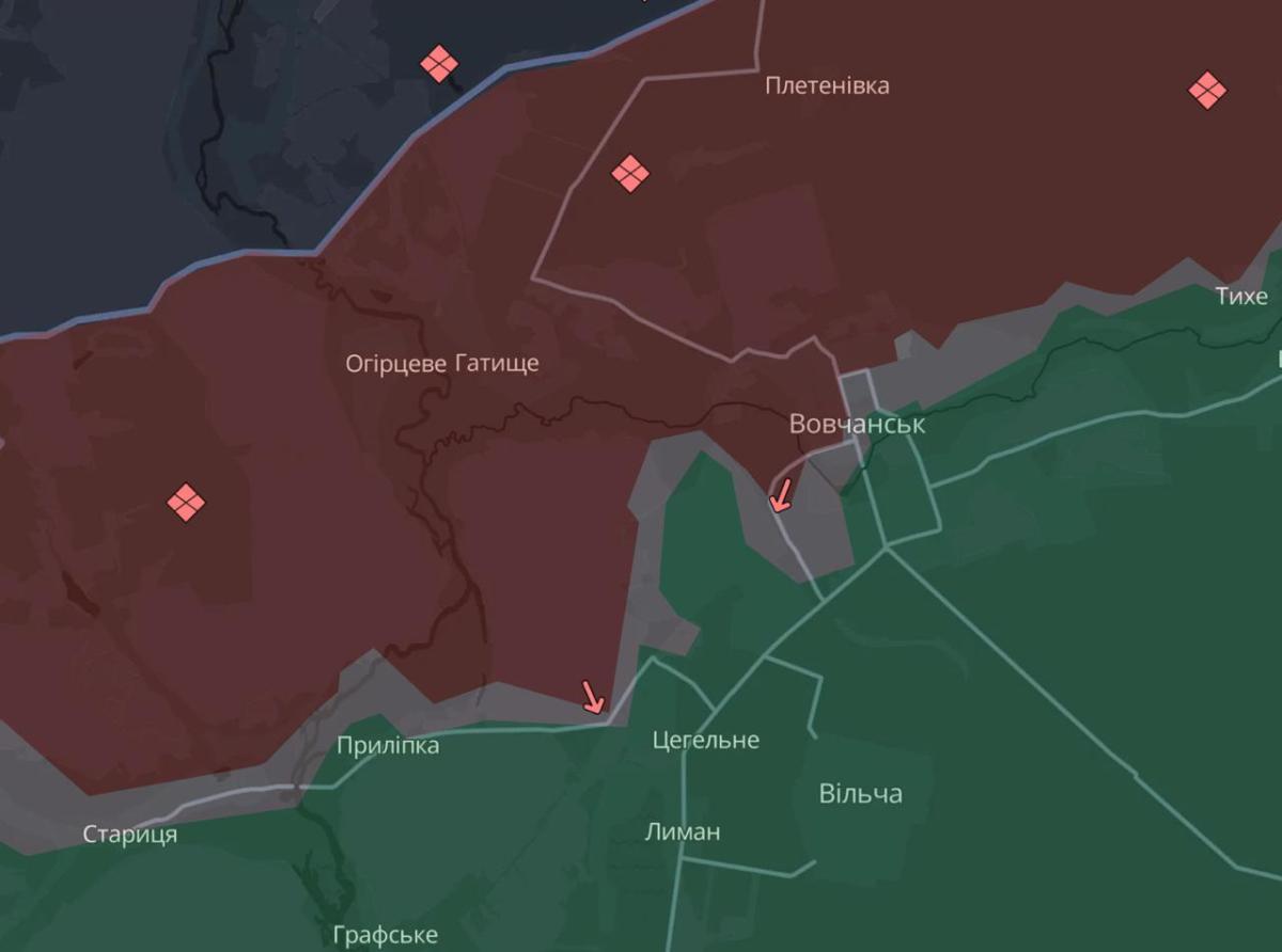 У DeepState підтвердили просування ворога біля Приліпки (це маленьке село на лівому березі Сіверського Донця, упритул розташоване до Вовчанська).