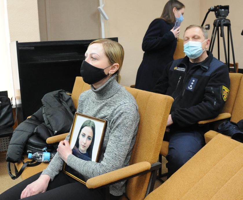 На судовому засіданні була присутня Любов Азаренкова — дружина і мати загиблих Дмитра і Анастасії Азаренкових. А також Віталіна Шевченко — сестра і тітка рятувальника та його 15-річної доньки. Вони тримали в руках портрети своїх близьких, яких більше ніколи не зможуть побачити.