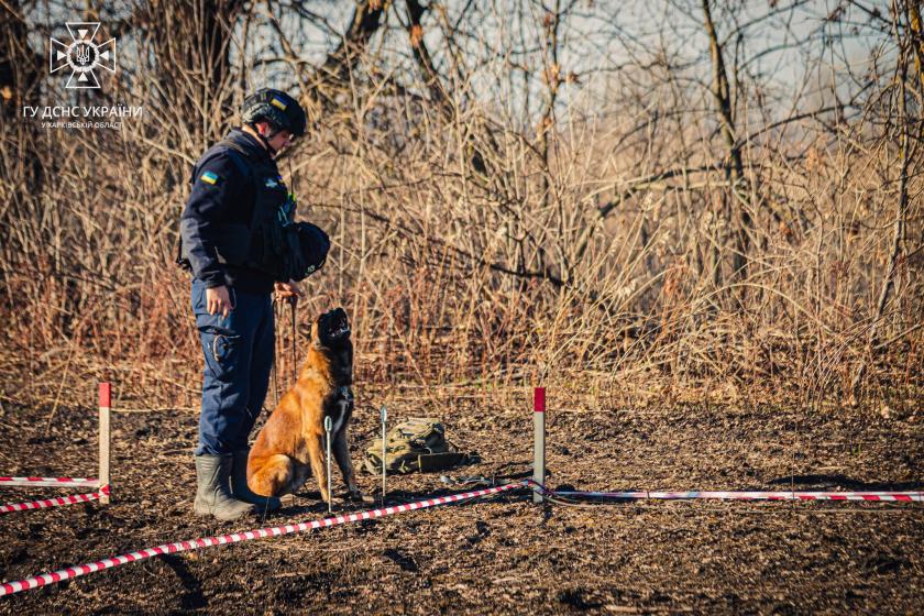 "По цьому напрямку з цього часу ми почали інтенсивно з ними працювати. Ми пройшли курс підготовки. Вони нам подарували шість підготовлених собак породи бельгійська вівчарка малінуа. І ми зробили у парі з кінологами. Тобто вони пройшли, кінологи у нас, річний курс підготовки за їхньою програмою. Ми побудували матбазу, яка містить бокси і подібні елементи, які у подальшому ці собаки зустрічали під час пошуку вибухонебезпечних предметів. І перед залученням ми їх, провели сертифікацію із залученням інструкторів NPA. І відповідно ось це перший раз ми їх залучили до виконання робіт, пов'язаних із гуманітарним розмінуванням", — розповів заступник начальника Міжрегіонального центру швидкого реагування Державної служби України з надзвичайних ситуацій Олександр Пачковський.