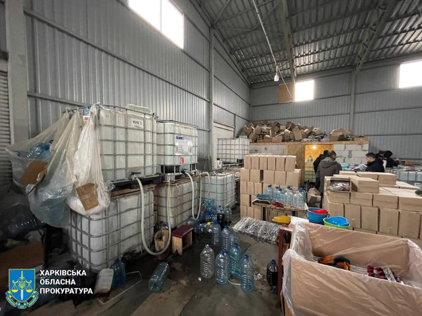 "За результатами проведення санкціонованих обшуків вилучено понад 45 тонн спирту, понад 11 000 літрів готової лікеро-горілчаної продукції на суму понад 6 млн гривень, обладнання для виготовлення фальсифікату, тару, транспорт, засоби зв’язку, грошові кошти", — повідомили у Харківській обласній прокуратурі.