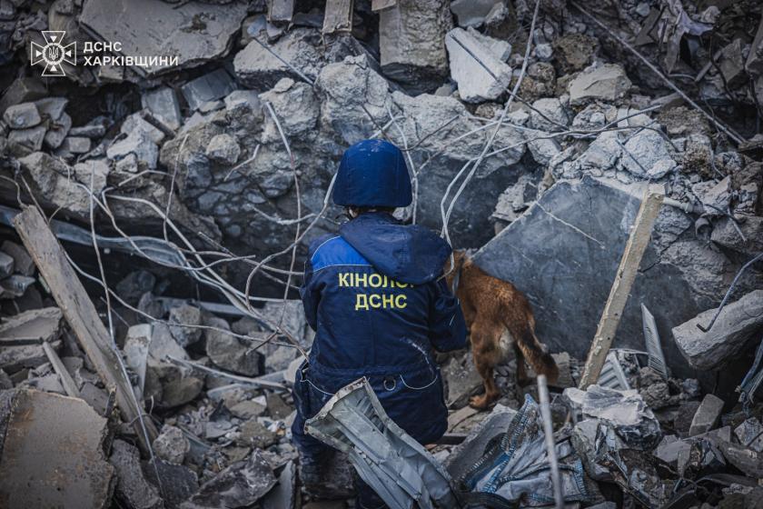 "Внаслідок масованої атаки сталися значні руйнування та пожежі в чотирьох виробничих будівлях. Під час робіт стався обвал конструкцій. На місці працюють два кінологічні розрахунки МЦШР ДСНС України: рятувальники разом із чотирилапими помічниками шукають людей, які можуть залишатися під завалами", — повідомили у ГУ ДСНС Харківщини.