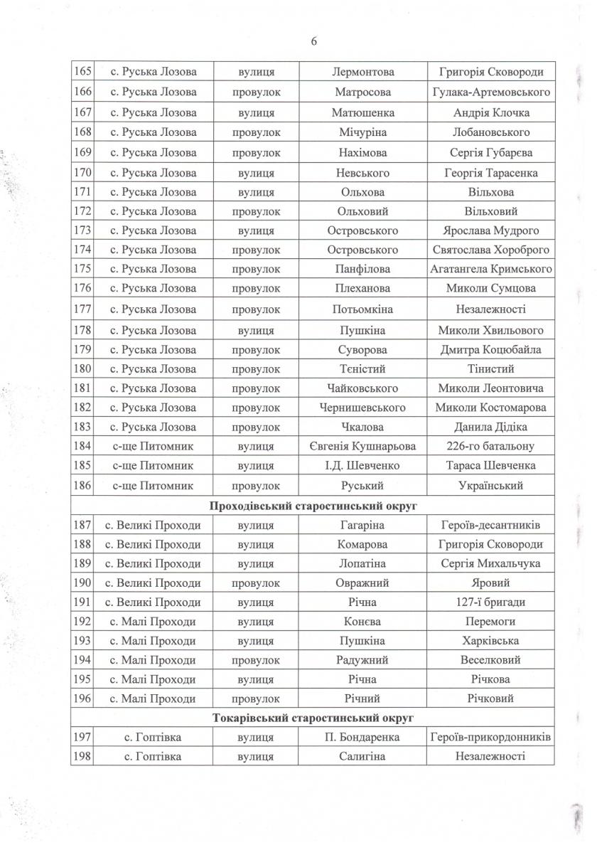 У населених пунктах Дергачівщини перейменовано 206 вулиць, провулків, в’їздів, тупиків та площ.