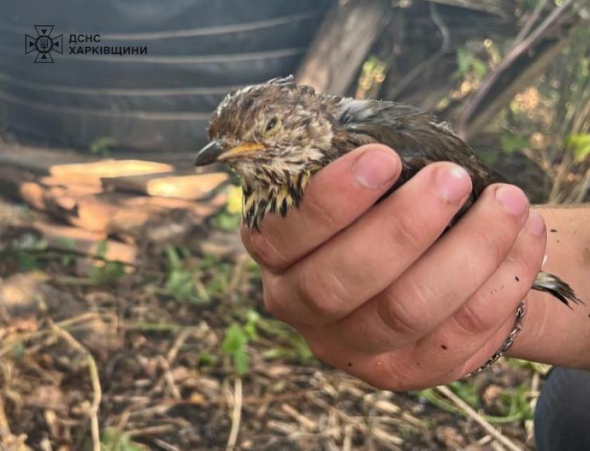 "Воно постраждало від диму та було врятоване вогнеборцями. Пташку передали небайдужим діткам, які взяли на себе зобов'язання піклуватися про неї. Не забувайте, що екосистеми — це чийсь дім! Тварини й пташки також маю право на життя! Не вбивайте їх!", — зазначили у Головному управлінні Держслужби України з надзвичайних ситуацій у Харківській області.