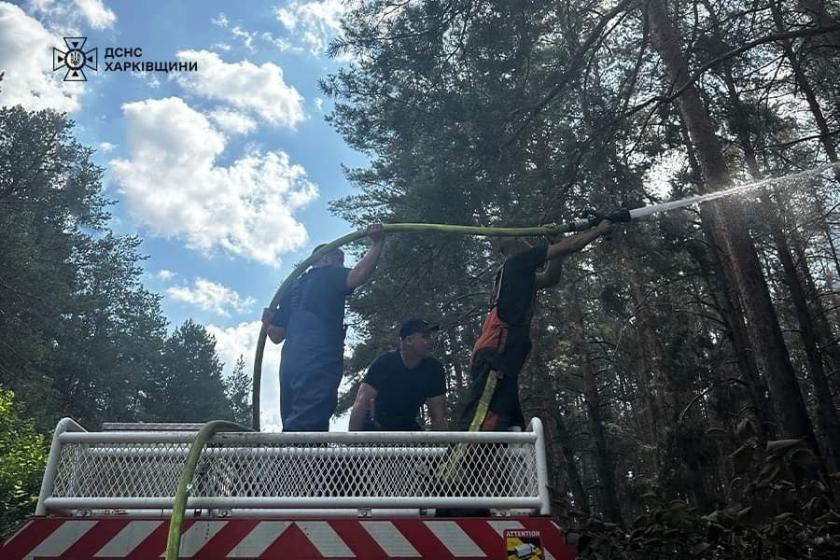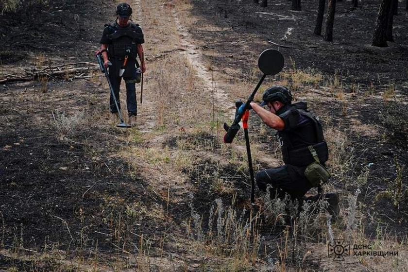 "Приборкати вогонь рятувальникам допомогли сапери ДСНС, які використовуючи машини механізованого розмінування, спільно з лісниками облаштовували мінералізовані смуги в лісах, щоб запобігти подальшому поширенню вогню. Також за допомогою міношукачів здійснювалося сканування місцевості, аби убезпечити шляхи пересування пожежної техніки", — розповіли у ГУ ДСНС.