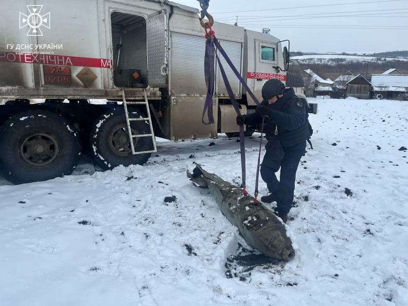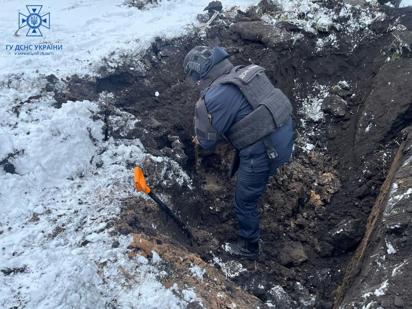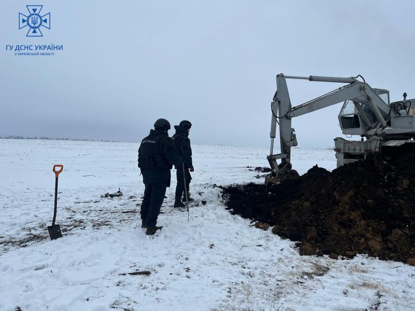 "Ще одна нерозірвана авіабомба знаходилась на городі поблизу приватного подвір'я у с. Катеринівка Великобурлуцької громади. Сапери ДСНС ідентифікували боєприпас як КАБ-500, вилучили його і знищили на спеціальному майданчику поза межами населеного пункту", — розповіли у Головному управлінні Державної служби України з надзвичайних ситуацій у Харківській області.