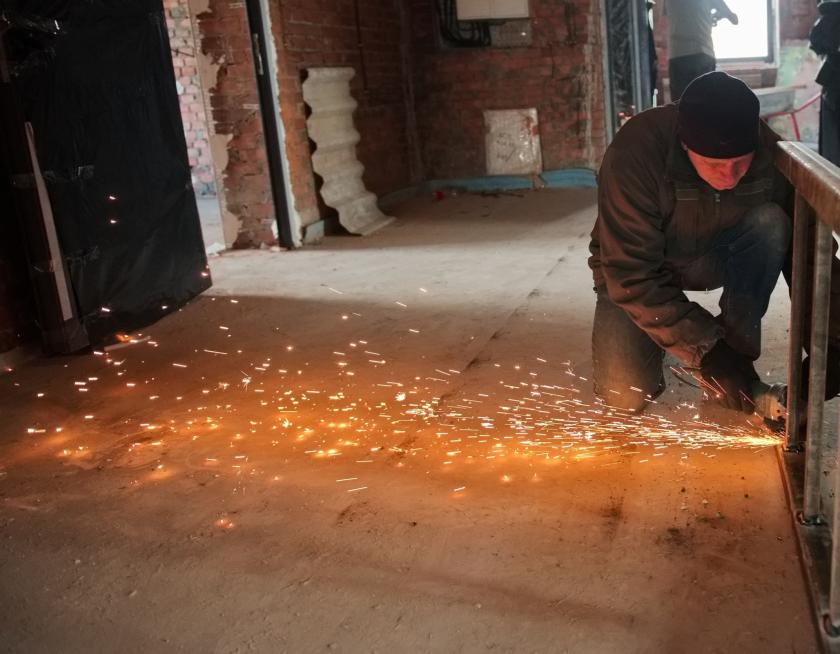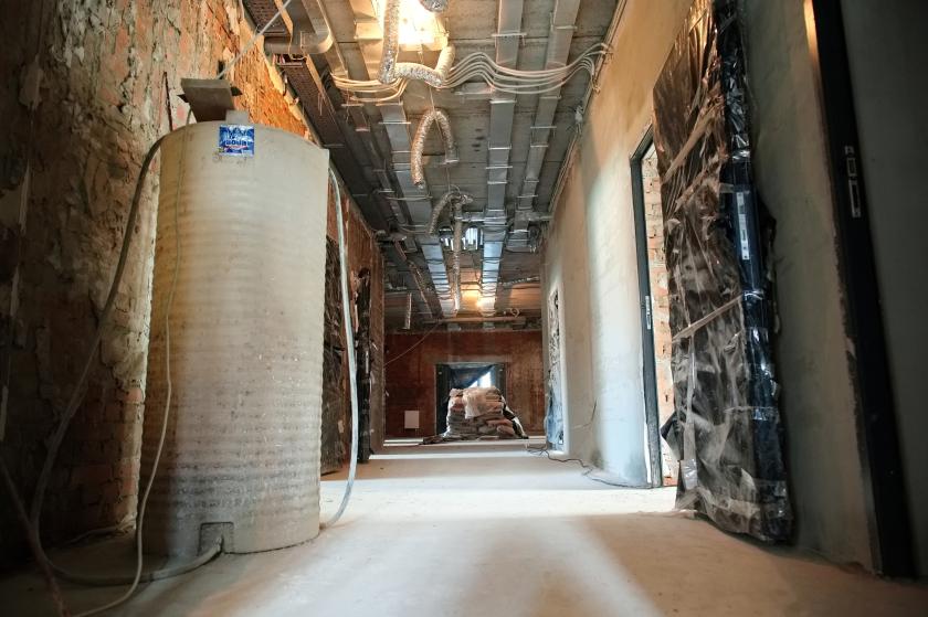 "Виконуються роботи щодо опалення та покрівлі. Я думаю, ло кінця цього місяця ми її зробимо. Робляться навіси, поручні, штукатурка всередині, також електричні роботи і вентиляція, конденсування", — розповів про відновлювальні роботи директор з капітального будівництва підрядної організації Ігор Буряк.