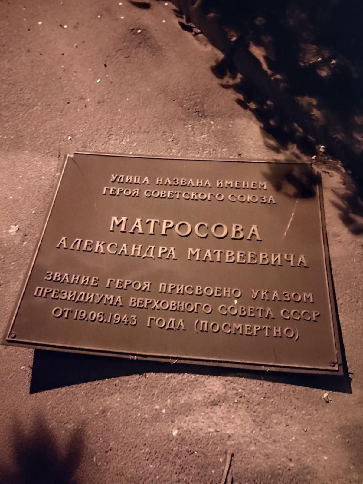 В Україні багато вулиць були названі на честь Матросова. Історики вважають його подвиг перебільшеним. Відомо, що у 1943 році підрозділ Матросова брав участь у боях на території Псковської області РФ. В районі села Чорнушки він загинув, нібито закриваючи своїм тілом амбразуру німецької ДЗОТ.