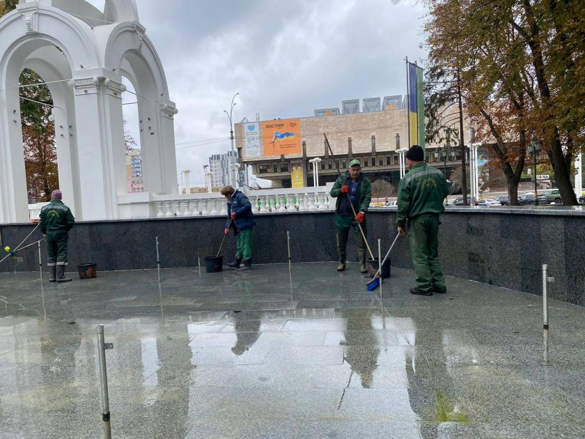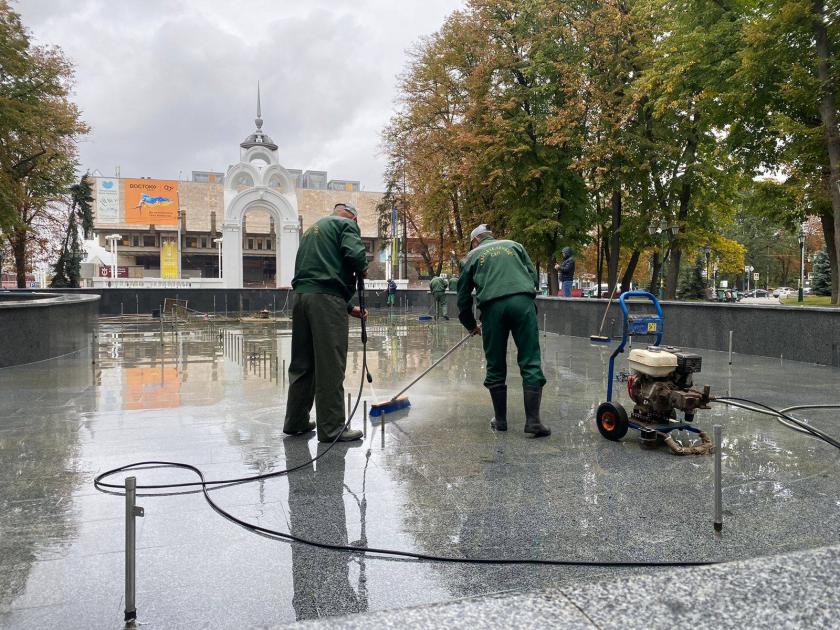 "Наші майстри повністю спустили воду, вимили чашу, обробили бортики спеціальним розчином і продули труби. А ще — на зимові канікули демонтували електронасоси, форсунки та світильники. Попереду консервація ще 7 фонтанів міста. До настання холодів усі фонтани будуть готові до зимового сну!", — розповіли у "Харківзеленбуді".