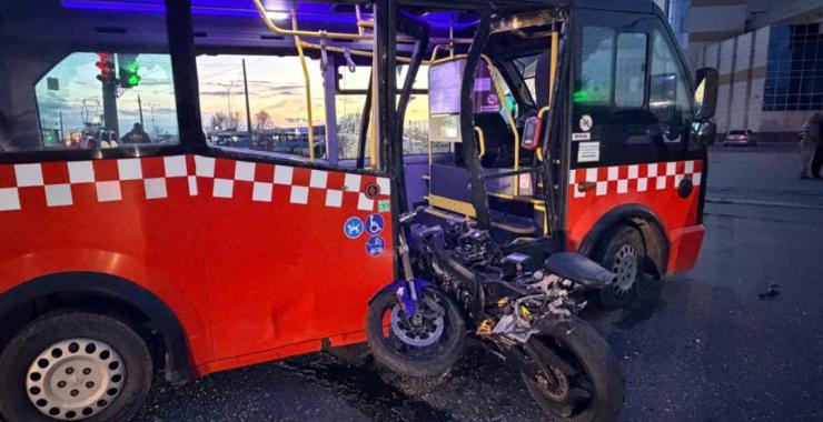 Міський автобус рухався в районі регульованого перехрестя вулиць Василя Стуса та Академіка Павлова, за кермом мотоцикла Suzuki був 18-річний хлопець. Його мотоцикл буквально влетів у двері маршрутки, що стояла на кінцевій зупинці. На щастя, пасажирів у салоні не було.