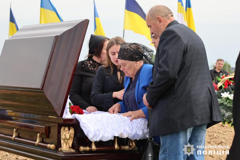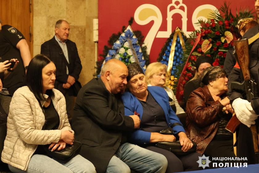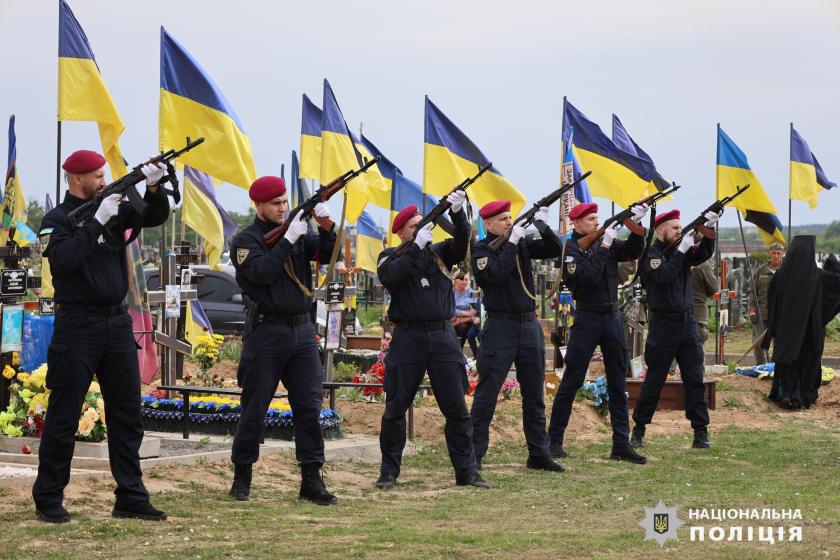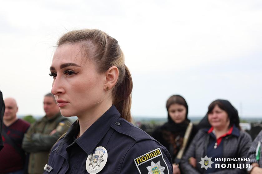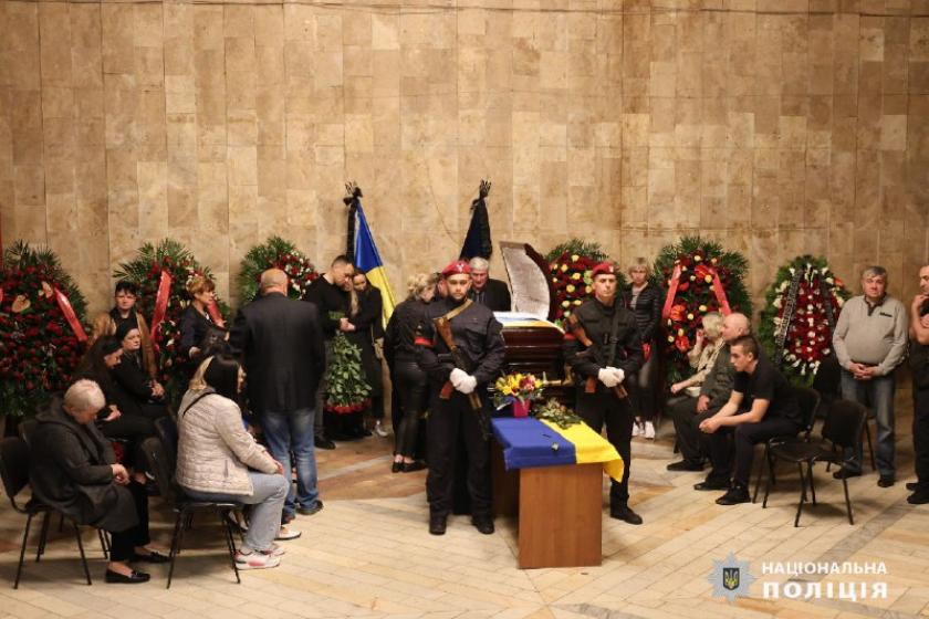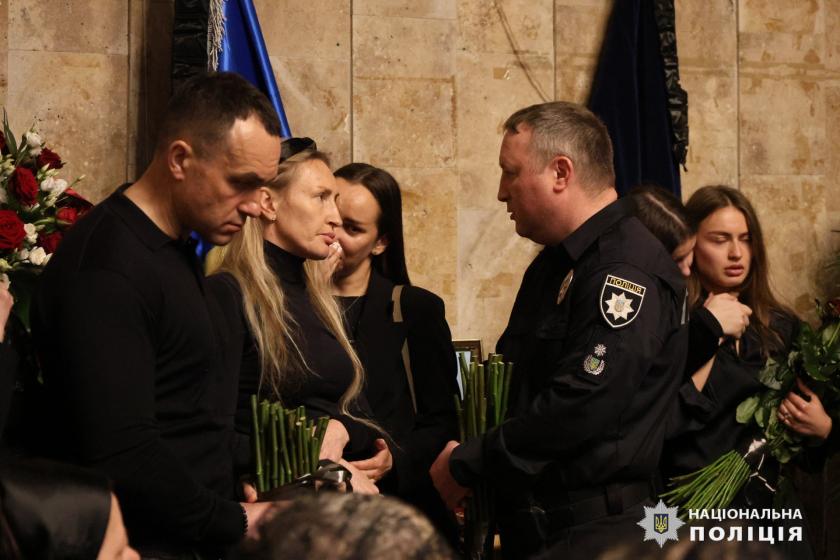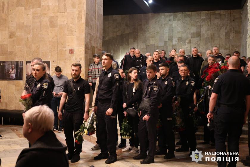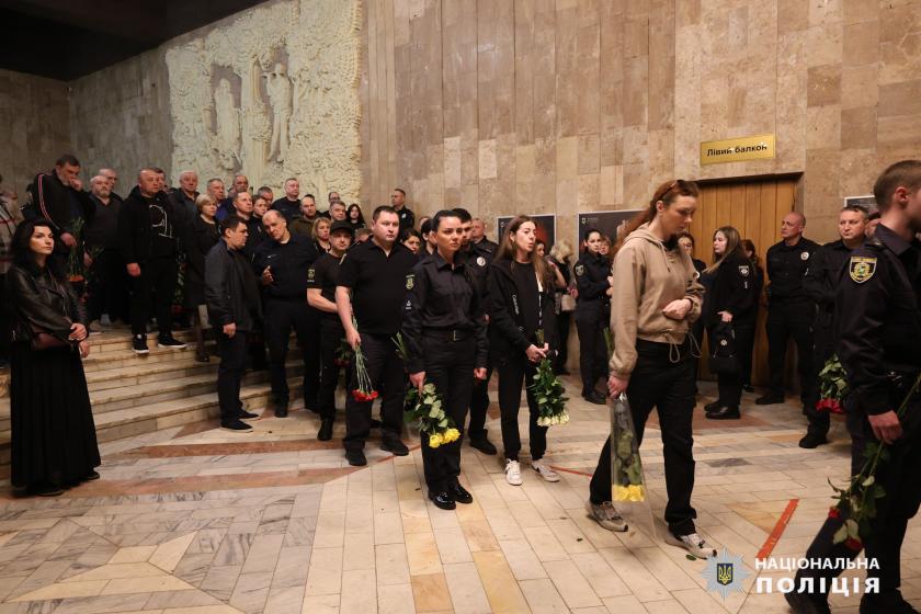 Особовий склад на чолі з керівником поліції Харківщини Володимиром Тимошком, представники місцевої влади, друзі, близькі, харків’яни простилися з поліцейським та проводили його в останню путь.