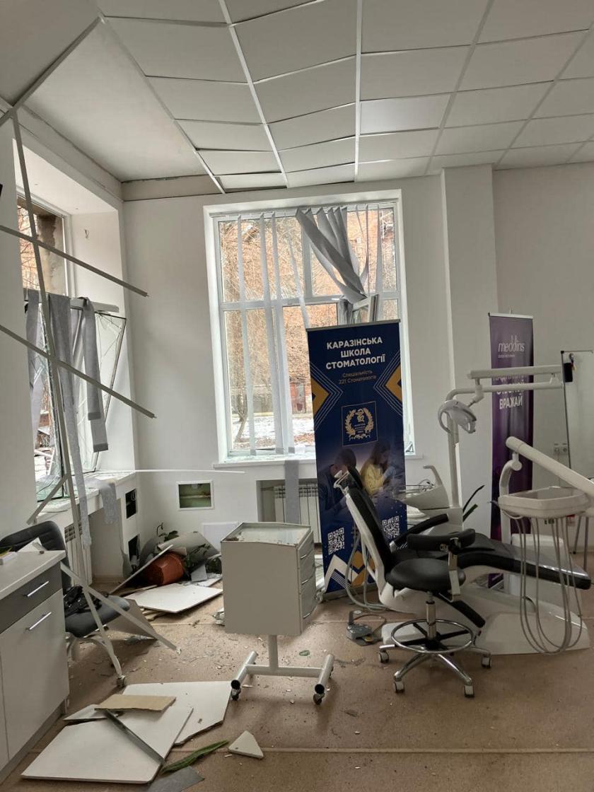 В обласній клінічній лікарні показали руйнування, які завдали дрони терористів: розтрощені медичні кабинети, апаратура, медичне обладнання. За словами начальника Харківської обласної адміністрації Олега Синєгубова, окупанти вдарили по двом медзакладам: обласній клинічній та стоматологічній лікарні.