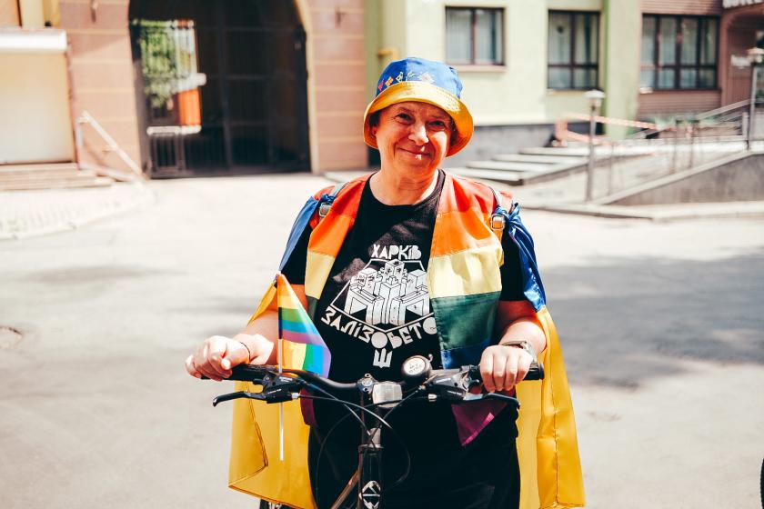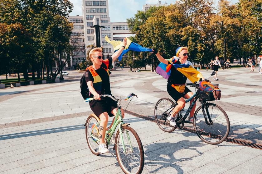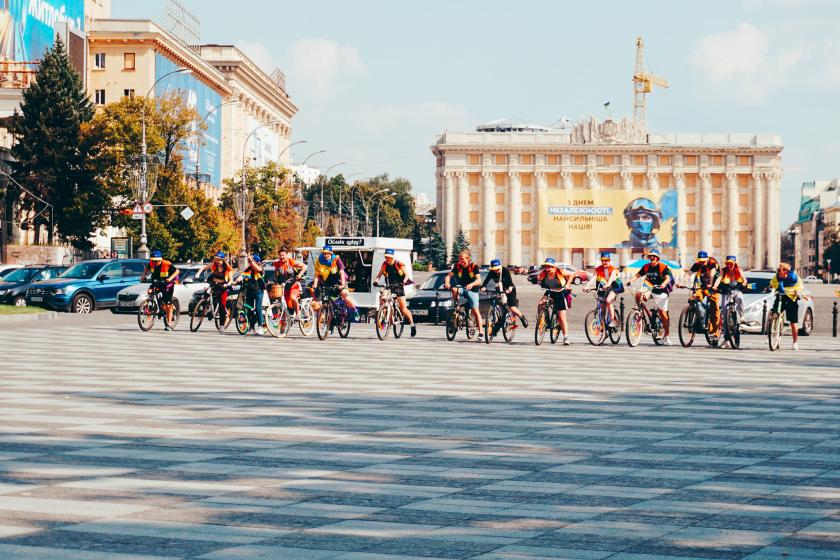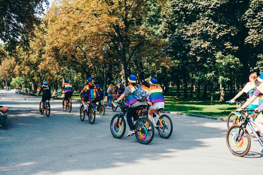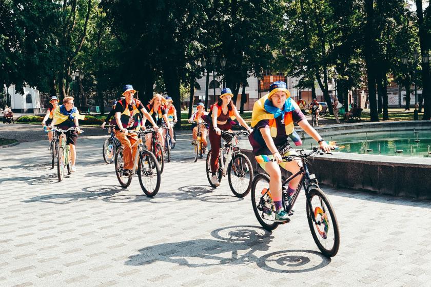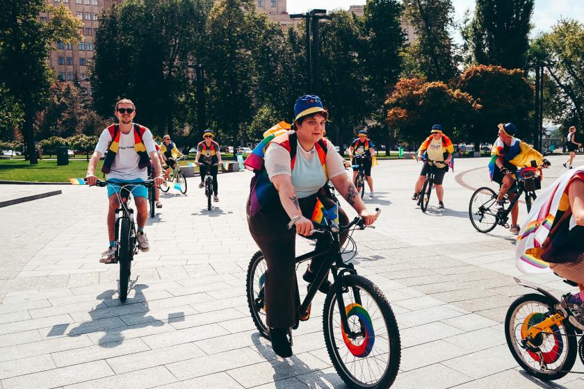 25 велосипедистів з веселковою символікою та прапорами України проїхалися центром міста.
