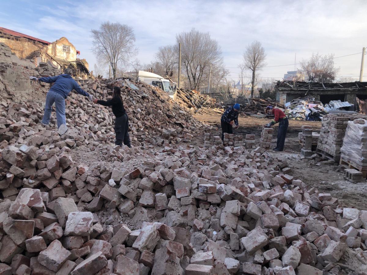 Уже рік архітектори, студенти та інші небайдужі харків'яни, об'єднані у "Спільному відновлення спадщини в Харкові", працюють на місцях знищених обстрілами пам'яток. Вони старанно відчищають від сміття цінні деталі — переважно це старовинна цегла. Такого досвіду співпраці волонтерів та комунальних служб задля порятунку спадщини немає в жодному іншому місті України.