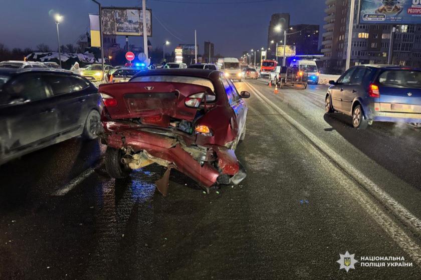 "Після цього Volkswagen Passat продовжив рух та зіткнувся з автомобілем Daewoo Sens, який їхав попереду. У подальшому некерований Volkswagen Passat виїхав на зустрічну смугу руху, де відбулося зіткнення з автомобілем Opel Zafira, що рухався назустріч. Крім того, автомобіль Lexus після первинного зіткнення здійснив наїзд на бордюрний камінь, а згодом - на припарковані біля краю проїзної частини автомобілі Mitsubishi Pajero та Mitsubishi Lancer", повідомили у Нацполіції Харківщини.
