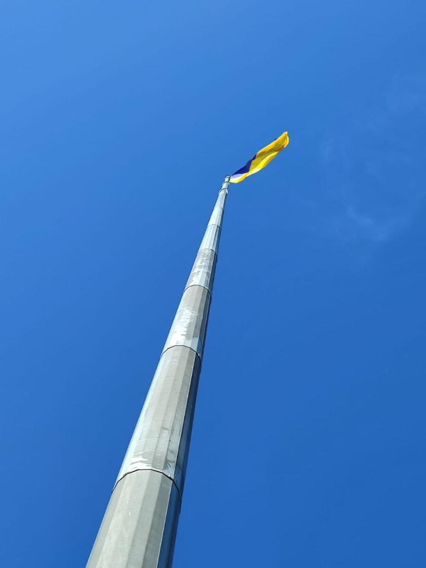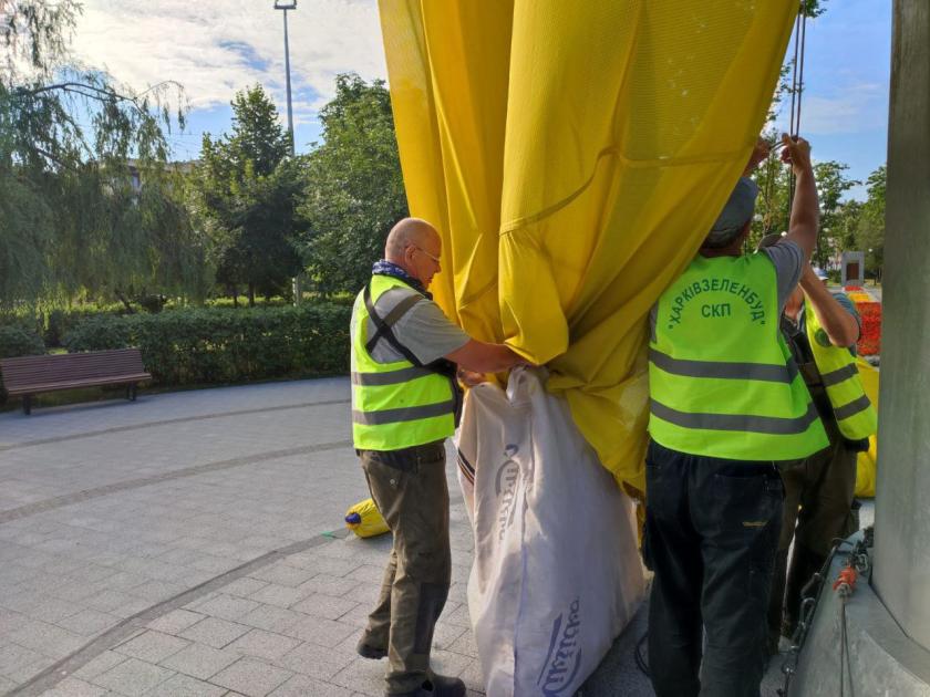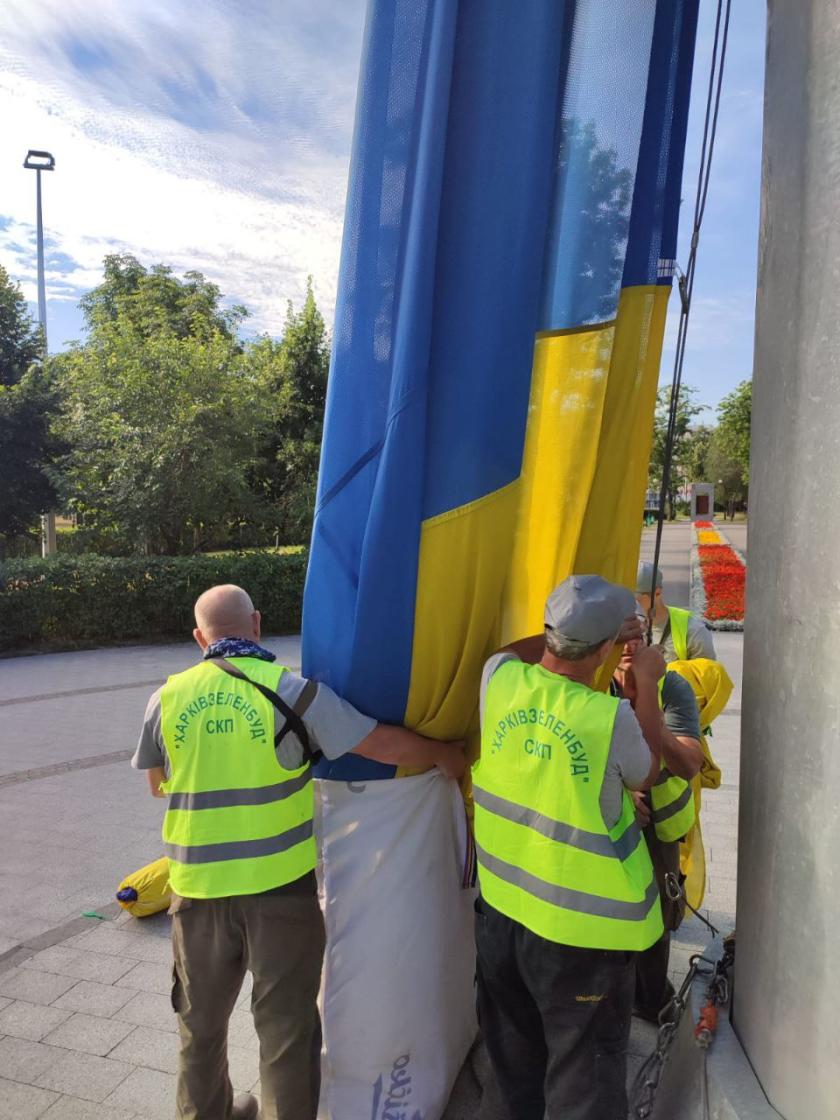 У Харкові через імовірну негоду замінили державний прапор на флагштоку. Співробітники комунального підприємства "Харківзеленбуд" установили полотнище менших розмірів.