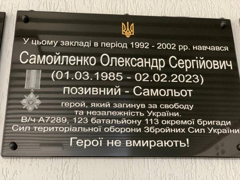 Дошку Олександру Самойленку відкрили 23 серпня. Її встановили на будівлі ліцею №143. Олександр Самойленко народився 1 березня 1985 року. У цьому ліцеї навчався із 1992 по 2002 рік. Із початком війни повернувся у Харків з-за кордону та добровільно доєднався до 113-ї окремої бригади тероборони. Мав позивний — Самольот. Брав участь у деокупації Харківської області. Загинув 2 лютого минулого року у Бахмуті. Посмертно нагороджений орденом "За мужність" III ступеня.