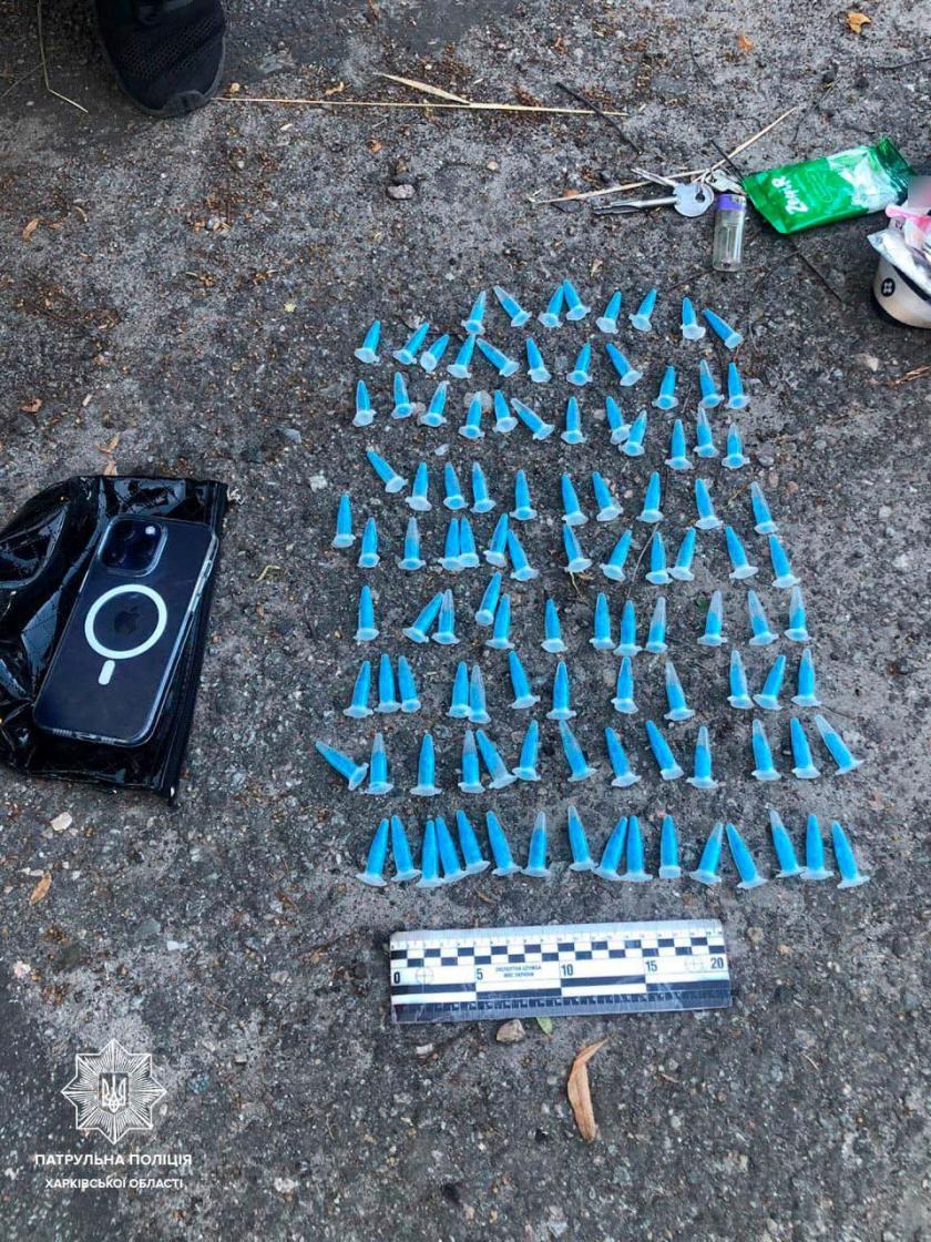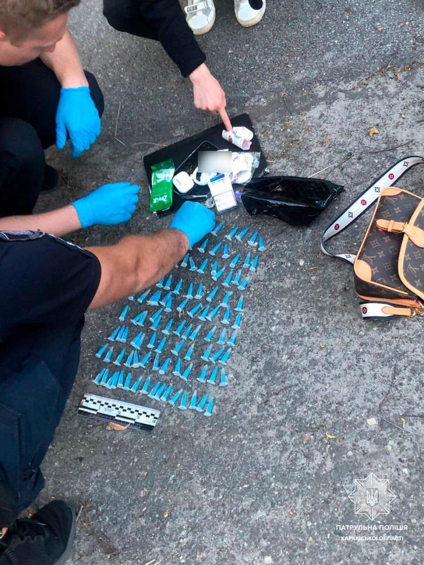 "Під час спілкування громадянка повідомила поліцейським, що має з собою наркотичні речовини, які вона переносить з метою збуту через так звані "закладки". Жінка розповіла правоохоронцям, що переносить у сумочці 106 згортків із забороненими речовинами", — розповіли у Патрульній поліції Харківської області.