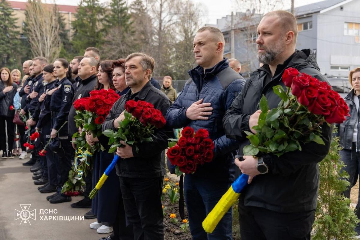 "Сьогодні на місці трагедії, де встановлено меморіальну дошку, зібралися їхні рідні, друзі, колеги-рятувальники, поліцейські, керівництво обласної та міської влади, адміністрацій Холодногірського та Новобаварського районів Харкова, небайдужі громадяни, щоб віддати шану загиблим героям", розповіли у ДСНС Харківщини.