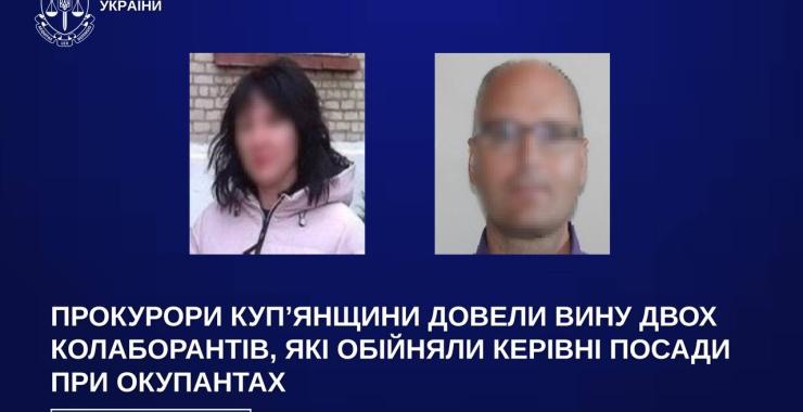 44-річний чоловік і 45-річна жінка працювали на росіян під час окупації Куп'янського району. Мешканець селища Ківшарівка добровільно зголосився на посаду "в. и. о. директора Территориального центра социального обслуживания Купянского района" та відповідав за соціальні питання окупантів, розпоряджався майном і грошима.