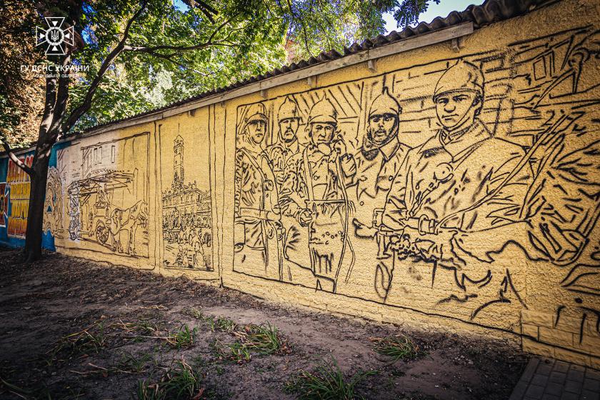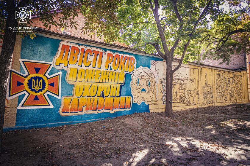 Мурал із зображенням роботи харківських пожежників протягом двохсот років 200-річчяної епохи з'явиться на стіні у сквері Пожежного. Працюють над роботою художникіи-муралісти та волонтери благодійної організації “Турбота Харків”, — повідомили в обласному управлінні ДСНС.
