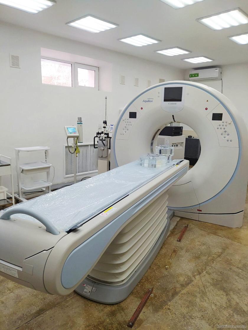 Це 32-зрізовий комп'ютерний томограф Aquilion Lightning виробництва Canon, який придбало Міністерство охорони здоров'я України, повідомили у Харківській обласній військовій адміністрації.
