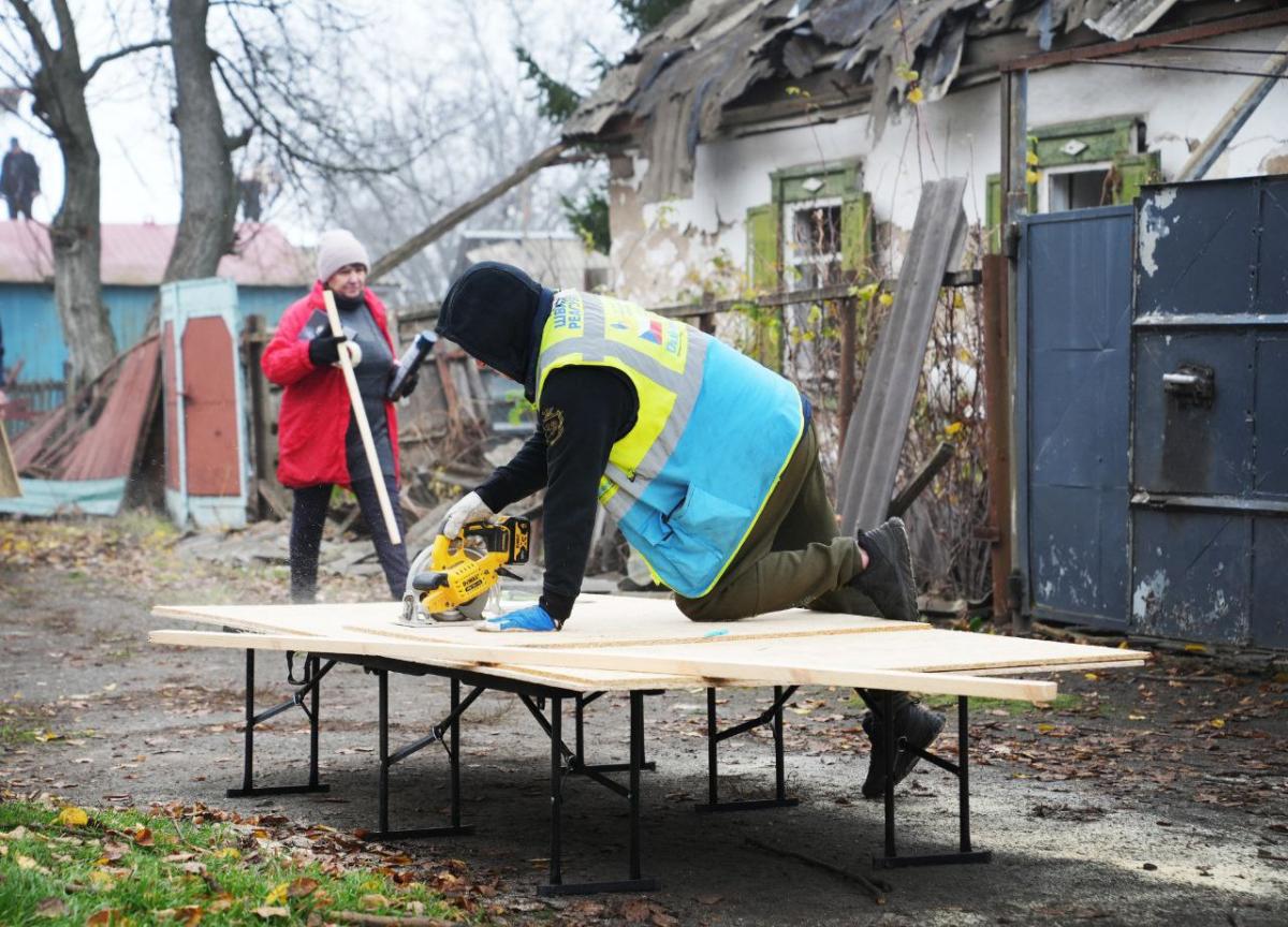 У Лозовій ремонтують пошкоджені обстрілами будинки.